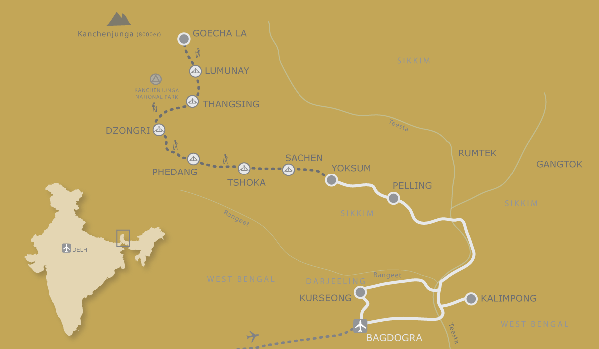 - Genehmigung (Permit) für Sikkim sowie das Permit für das Trek