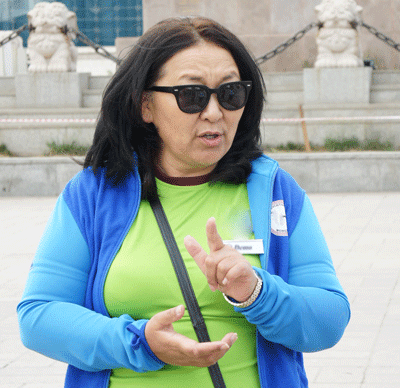 Dejidmaa ist gebürtige Mongolin. Nach einem 4-jährigen Deutschstudium und einer mehrmonatigen Fortbildung des Goethe-Instituts in Deutschland arbeitete sie zuerst als Lehrerin und Dolmetscherin. Seit 21 Jahren hat sie Reiseleitungerfahrung in ihrem Heimatland, sowohl für Wander- als auch für klassische Rundreisen durch die Mongolei. Sie bietet ihren Gästen eine breite und auch kritische Sachkenntnis zu Geschichte, Wirtschaft, Natur und Kultur, wie auch zu Sitten und Gebräuchen ihres Landes. Das Wohl ihrer Gäste steht dabei für sie an erster Stelle. Ihre herzliche, aufmerksame und stets fröhliche Art, ihre sehr gute Sprachkenntnis und ihr Organisationstalent machen das Reisen durch das weite, dünn besiedelte Land mit ihr zu einem ganz besonderen Erlebnis.